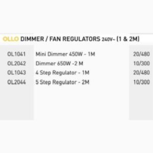 Be the first to review “OLLO DIMMER / FAN REGULATION 250V – [1 & 2M]” Cancel reply